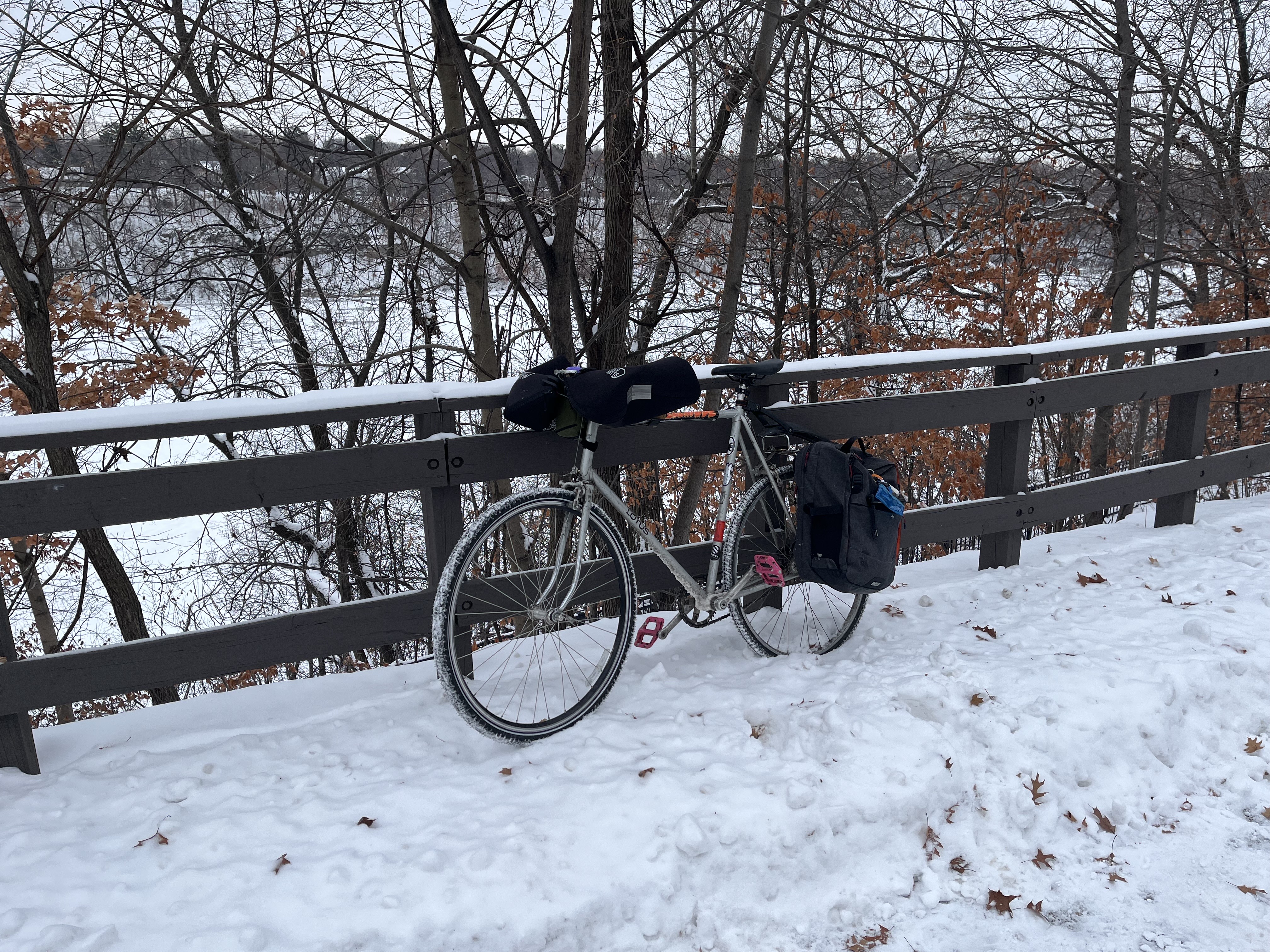 I'm a software engineer living in Minneapolis, Minnesota. I'm passionate about using a bicycle as transportation, and I believe that in the winter, you shouldn't need a fat tire bike to get around everywhere! For me, this means I rely on the bike trails getting plowed, which is what gets reported here. However, I also like riding my bike for fun! It's a great way to get outside and experience what little sunlight there is in the winter. During the summer, I like going on long distance bike rides on my main bike, a 1970s Peugeot steel road bike. In the summer of 2025, I biked to Duluth from Minneapolis (~170 miles) and in the fall of 2025 I biked to Fergus Falls from Minneapolis (~208 miles).